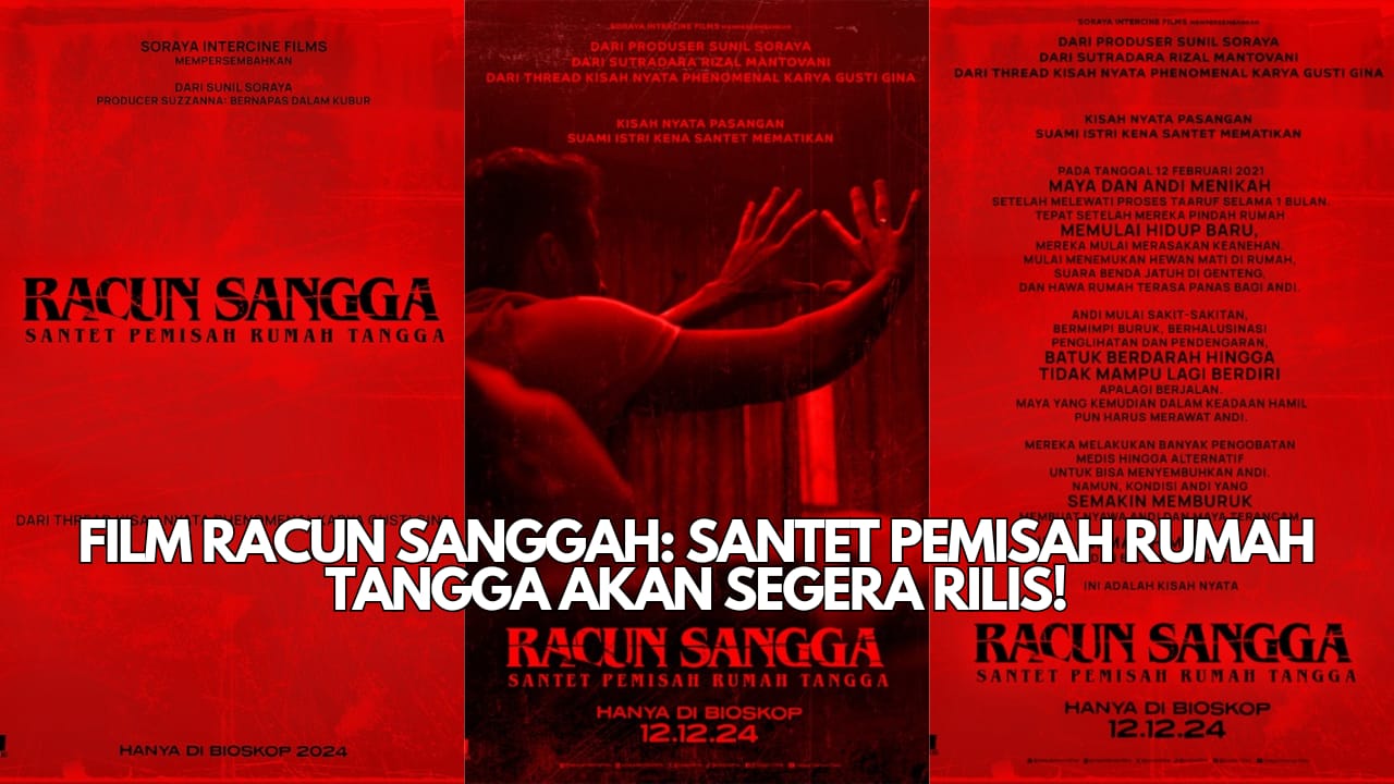 ”Soraya Intercine Films mempersembahkan Official Teaser Poster Film “Racun Sangga : Santet Pemisah Rumah Tangga” Hanya di Bioskop. 12.12.24” tulis instagram @sorayaintercinefilms.