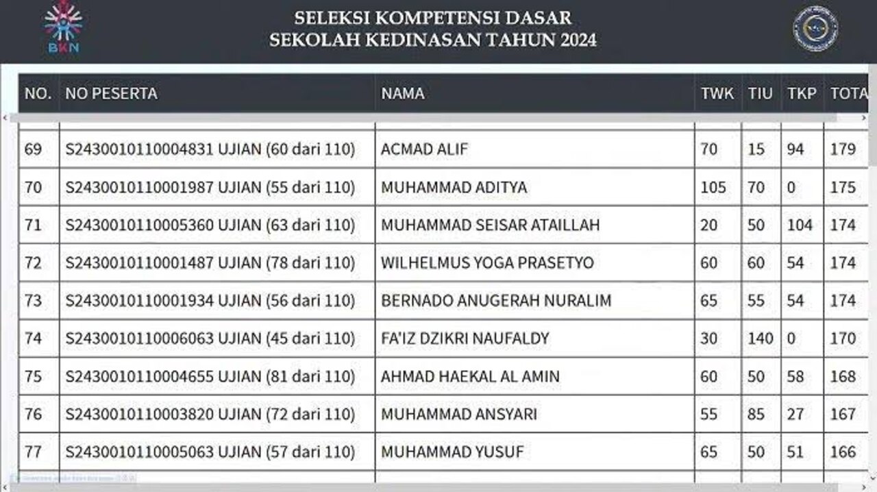 Masing-masing jenis tes memiliki nilai ambang batas atau passing grade yang berbeda, yang harus dicapai oleh peserta agar dapat melanjutkan ke tahap seleksi berikutnya.