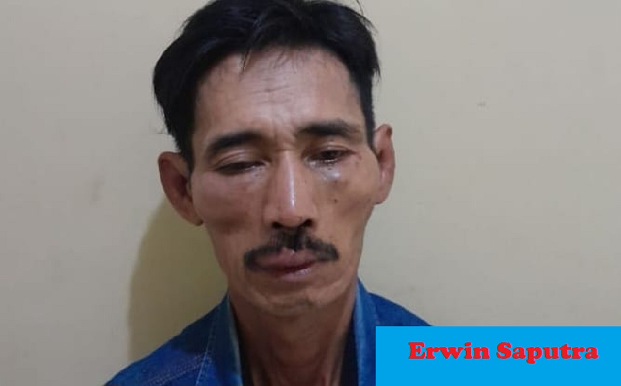 KDRT : Erwin Saputra tersangka kasus KDRT yang mengancam dan nyaris memerkosa putri kandungnya. (foto : berry/sumeks.bacakoran.co)--