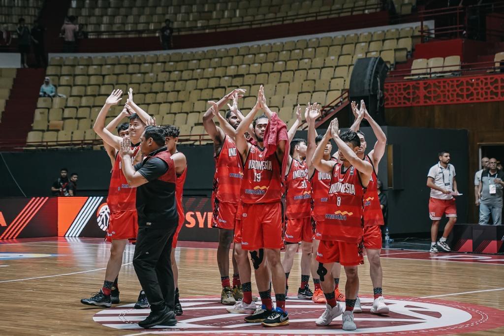 Pemain Timnas Basket Putra memberikan salam kepada fans usai pertandingan -perbasi-