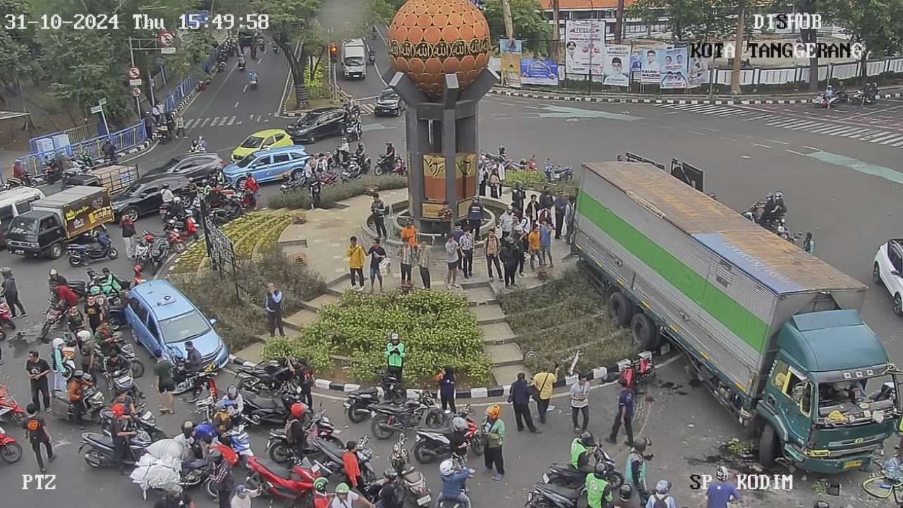 Kemudian, beberapa kendaraan akhirnya ikut mengejar truk dan truk berhenti persis di tugu Adipura Jalan Raya veteran kota Tangerang setelah dikepung masa.