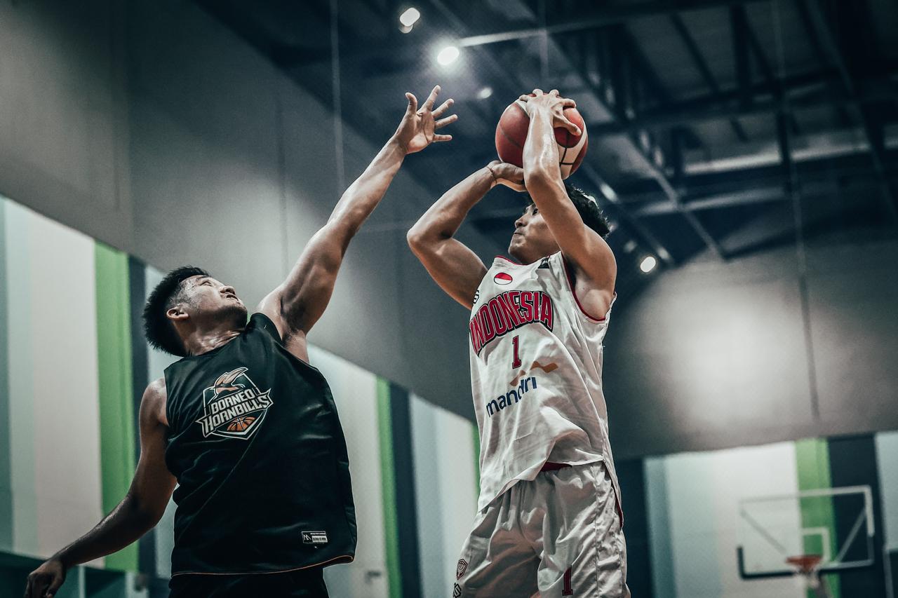 Timnas Basket Putra saat uji coba melawan Dewa United-perbasi-