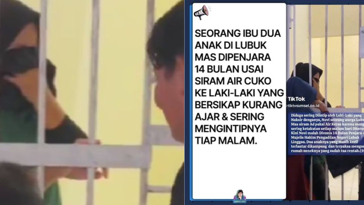 BACAKORAN.CO - Viral di media sosial kisah seorang ibu 2 anak di Desa Lubuk Mas, Musi Rawas Utara, Sumatera Selatan, dipenjara 1 tahun 4 bulan lantaran siram air keras ke pria yang kerap kali menerornya.