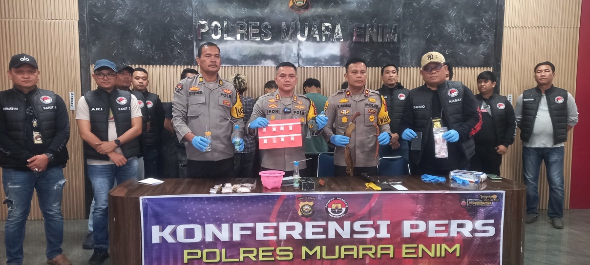 Kapolres Muara Enim, AKBP Jhoni Eka Putra di dampingi Kasat Res Narkoba AKP Halim Kusumo dalam keterangannya kepada wartawan  mengatakan bahwa penggerebekan itu dilakukan di lokasi yang di sebut-sebut Kampung Narkoba.