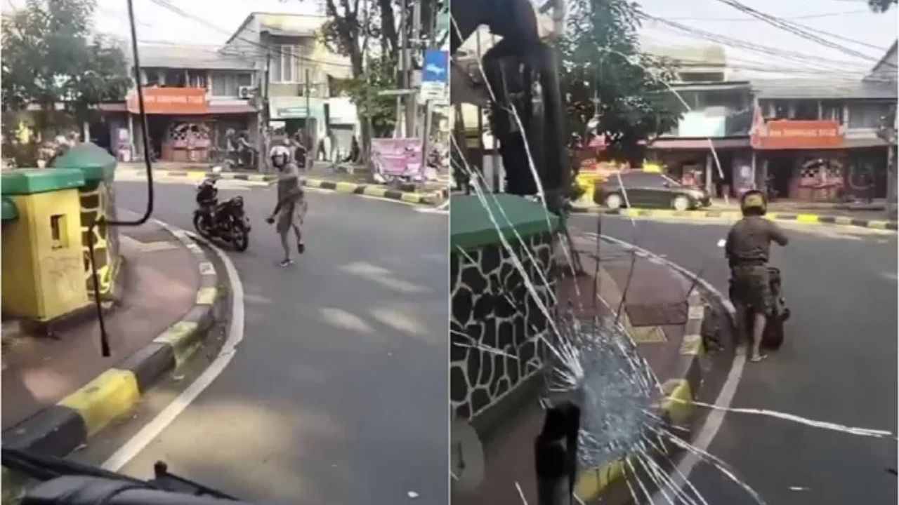 Viral bus TransJakarta dilempari batu oleh pengendara motor tak dikenal--Indozone News