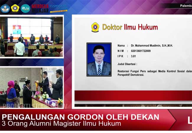 palembang, koransumeks.com –   selalu bersama-sama. dr h muhammad muslimin sh mh dan dr hj oslita sh mh mengikuti prosesi yudisium di , rabu 8 februari 2023. dengan ipk yang sama 3,81.  mendapat apresiasi. ketika proses penghargaan dan pengalungan gordon. keduaanya sontak mendapat tepuk tangan meriah. saat itu, pembawa acara berceloteh. dia memberitahukan kepada peserta yang hadir bawah muslimin dan oslita adalah pasangan suami istri. ”hadirin diberitahukan, bahwa mereka berdua adalah sepasang suami-isteri,” kata pemvawa acara itu. lantas kameraman yang ada disana bergegas. mereka segera mengambil tempat untuk foto.