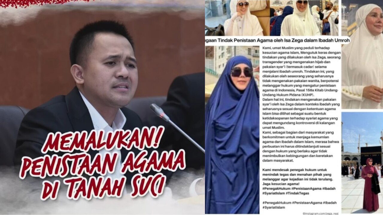 "Isa Zega melakukan umrah dengan cara-cara yang diperuntukkan bagi perempuan, hal ini merupakan bagian dari penistaan agama. Penistaan agama telah diatur dalam KUHP Nomor 156A dengan ancaman hukuman 5 tahun penjara," jelasnya.