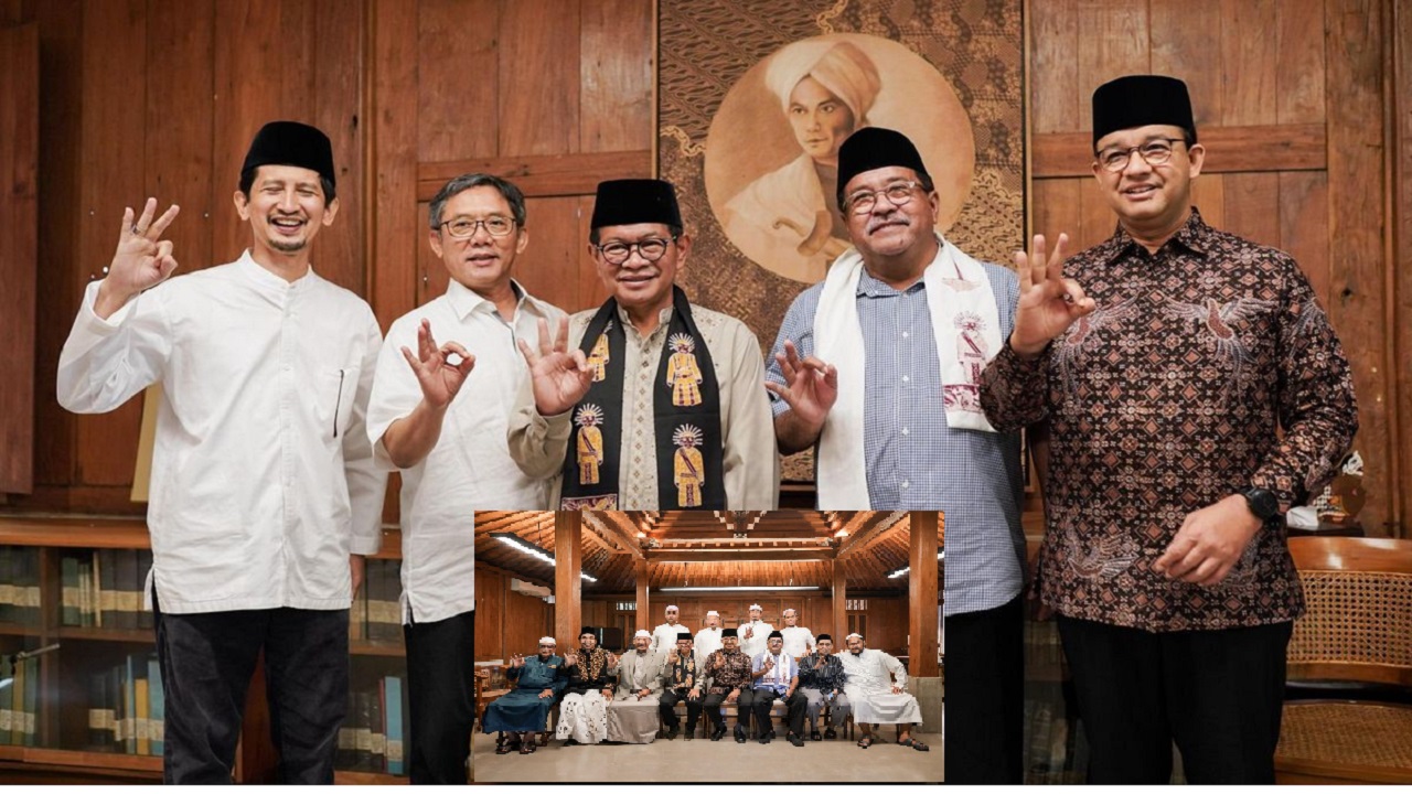 Dalam pertemuan di rumah Anies turut dihadiri oleh ulama dan habib, Pertemuan terlihat melingkar diisi perbincangan dan tawa para tamu serta tuan rumah.