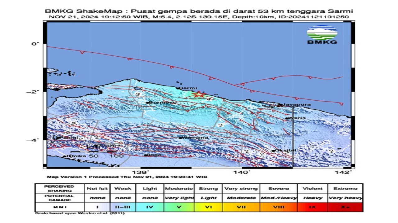 Gempa Bumi Berkekuatan Magnitudo 5.4 Guncang Tenggara Sarmi Papua-bacakoran.co-