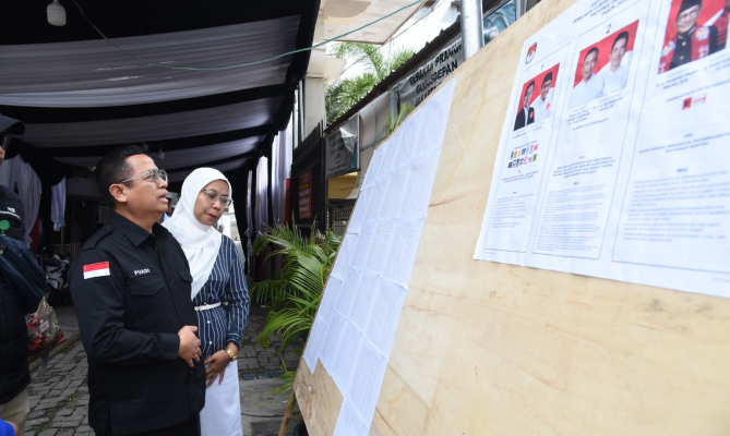 Anggota Bawaslu Puadi saat emngecek daftar pemiih tetap di tempat pemungutan suara -bawaslu-