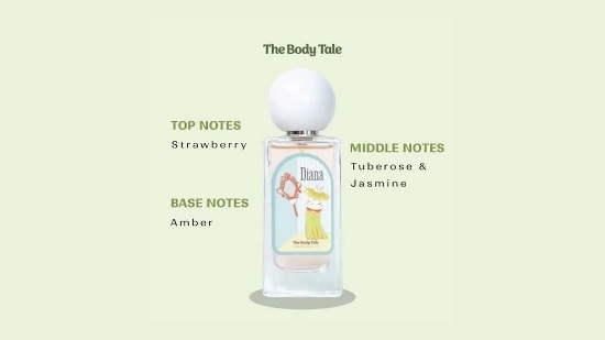 parfum the body tale diana adalah parfum dengan kesan fresh dan sweet dari kombinasi aroma strawberry yang fresh, tuberos yang soft dan jasmine yang semerbak.