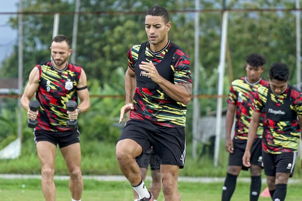 Spasojevic (kiri) terus berlatih untuk jaga kondisi agar bisa bersaing perebutkan posisi inti di Bhayangkara FC -lib-