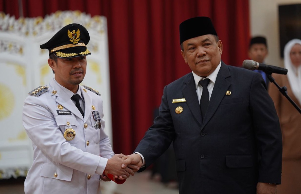 Penjabat (Pj) Gubernur Riau, SF Hariyanto saat melantik Risnandar Mahiwa sebagai Pj Wali Kota Pekanbaru beberapa waktu lalu.--istimewa
