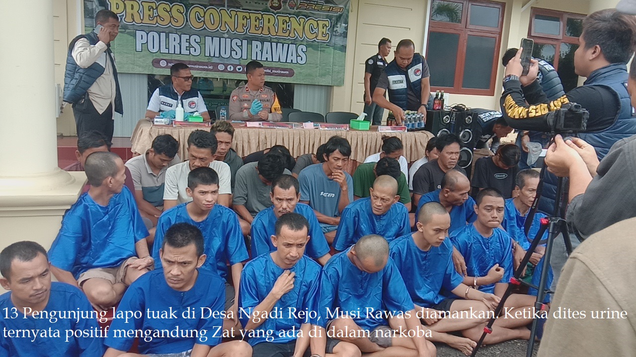 POSITIF : 13 Orang yang diamankan polisi dari lapo tuak di Desa Ngadi Rejo Musi Rawas dinyatakan positif mengkonsumsi narkoba. (foto : zulkarnain/sumeks.bacakoran.co)--