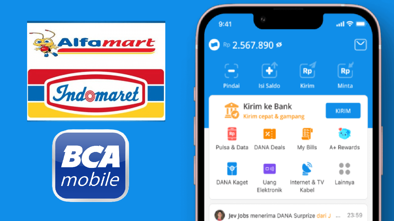 Mulai dari m-banking BCA hingga gerai Indomaret dan Alfamart.