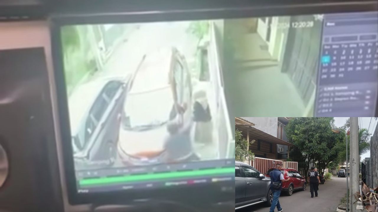 Dalam rekaman tersebut memperlihatkan seorang wanita berhijab dan bergamis hitam turun dari mobil merah menuju rumahnya.