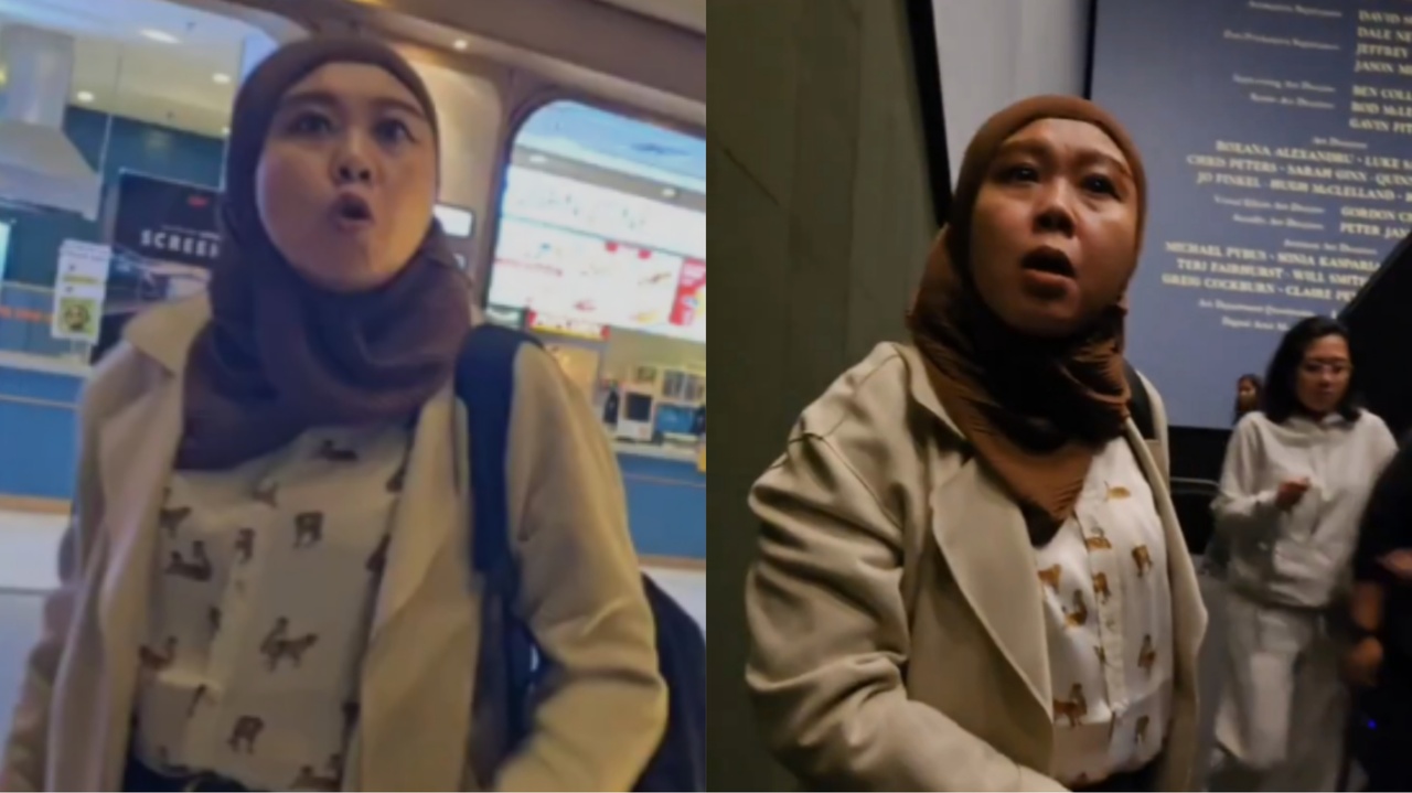 "Ngerekam di bioskop boleh atau enggak aturannya?," Tanya pria menegur ibu-ibu tersebut.