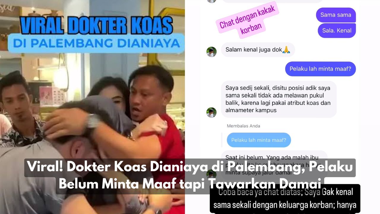 Viral! Dokter Koas Dianiaya di Palembang, Pelaku Belum Minta Maaf tapi Tawarkan Damai