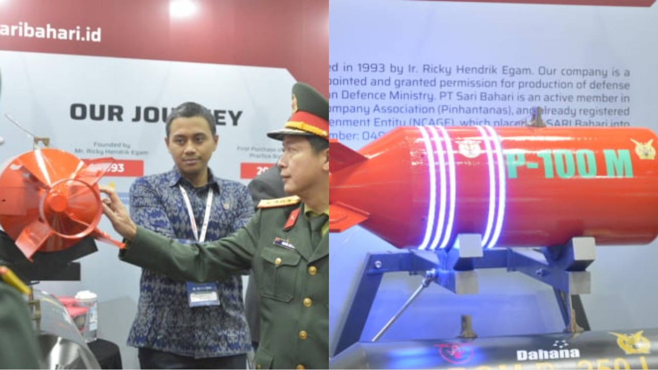 BACAKORAN.CO - Industri pertahanan dalam negeri Indonesia PT. Sari Bahari telah berhasil menampilkan berbagai jenis bom udara buatan lokal di ajang internasional.