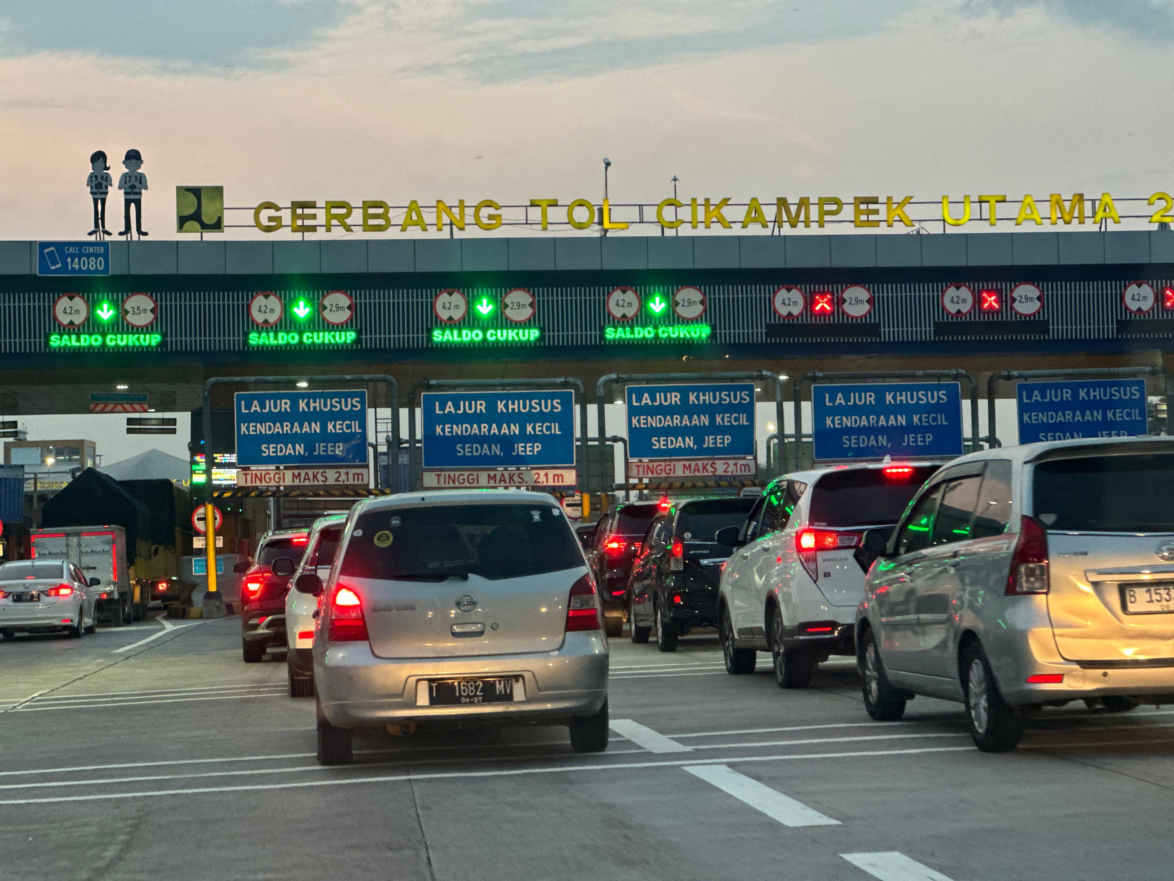 Potret pengendara saat antre di Tol Cikampek-bacakoran.co-