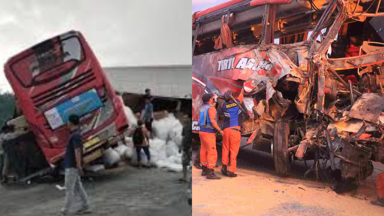 bacakoran.co - tragis melibatkan bus pariwisata tirto agung dan truk bermuatan pakan ternak terjadi di tol pandaan-malang, kabupaten malang, senin sore, 23 desember 2024.