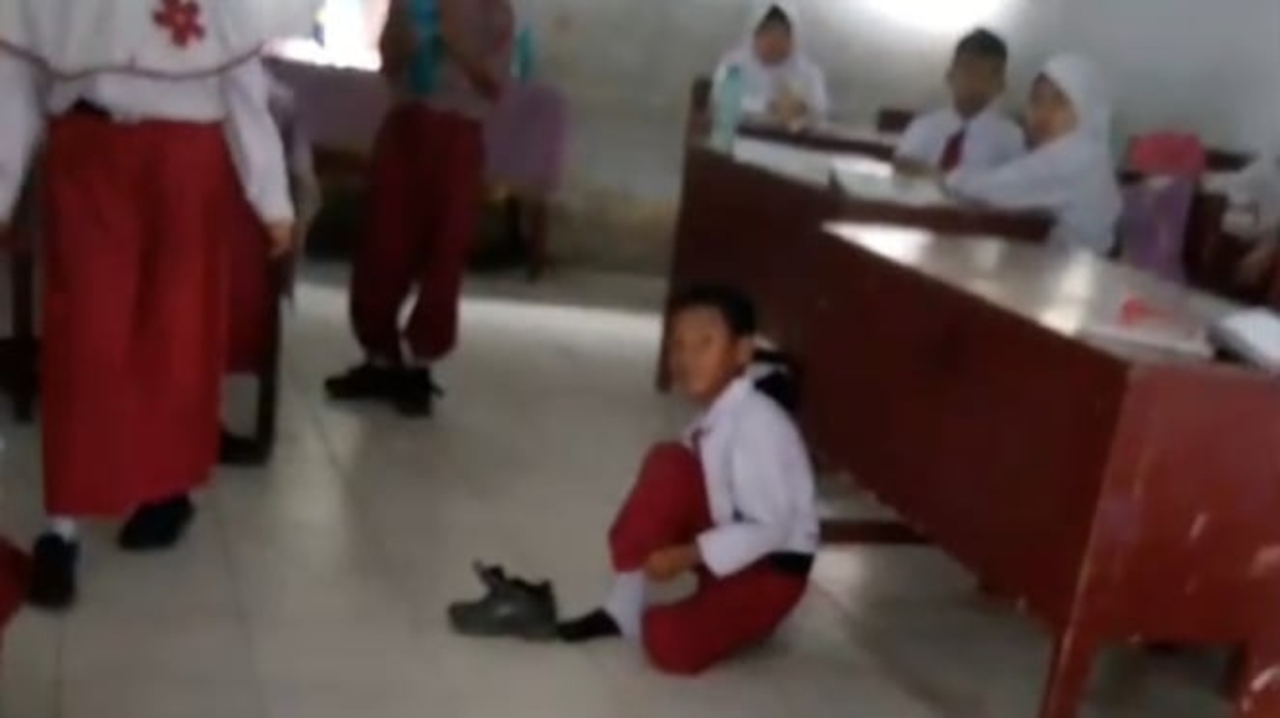 BACAKORAN.CO - Seorang siswa sekolah dasar di Kota Medan berinisial MI terpaksa belajar di lantai karena belum membayar uang sumbangan pembinaan pendidikan (SPP) selama tiga bulan.