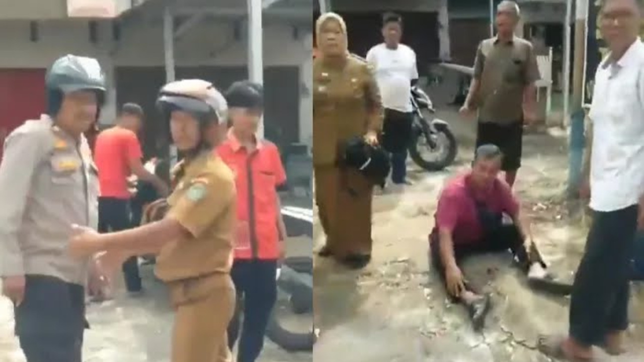 Dalam video yang diunggah terlihat dengan jelas korban duduk tak berdaya setelah ditendang oleh pelaku.