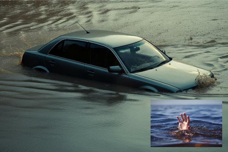 Ilustrasi mobil jatuh ke laut dan tenggelam. Rekaman CCTV tunjukkan Purnawirawan Jenderal TNI yang jasadnya mengapung di Marunda mengendarai mobil di dermaga sebelum jatuh ke laut.--istimewa