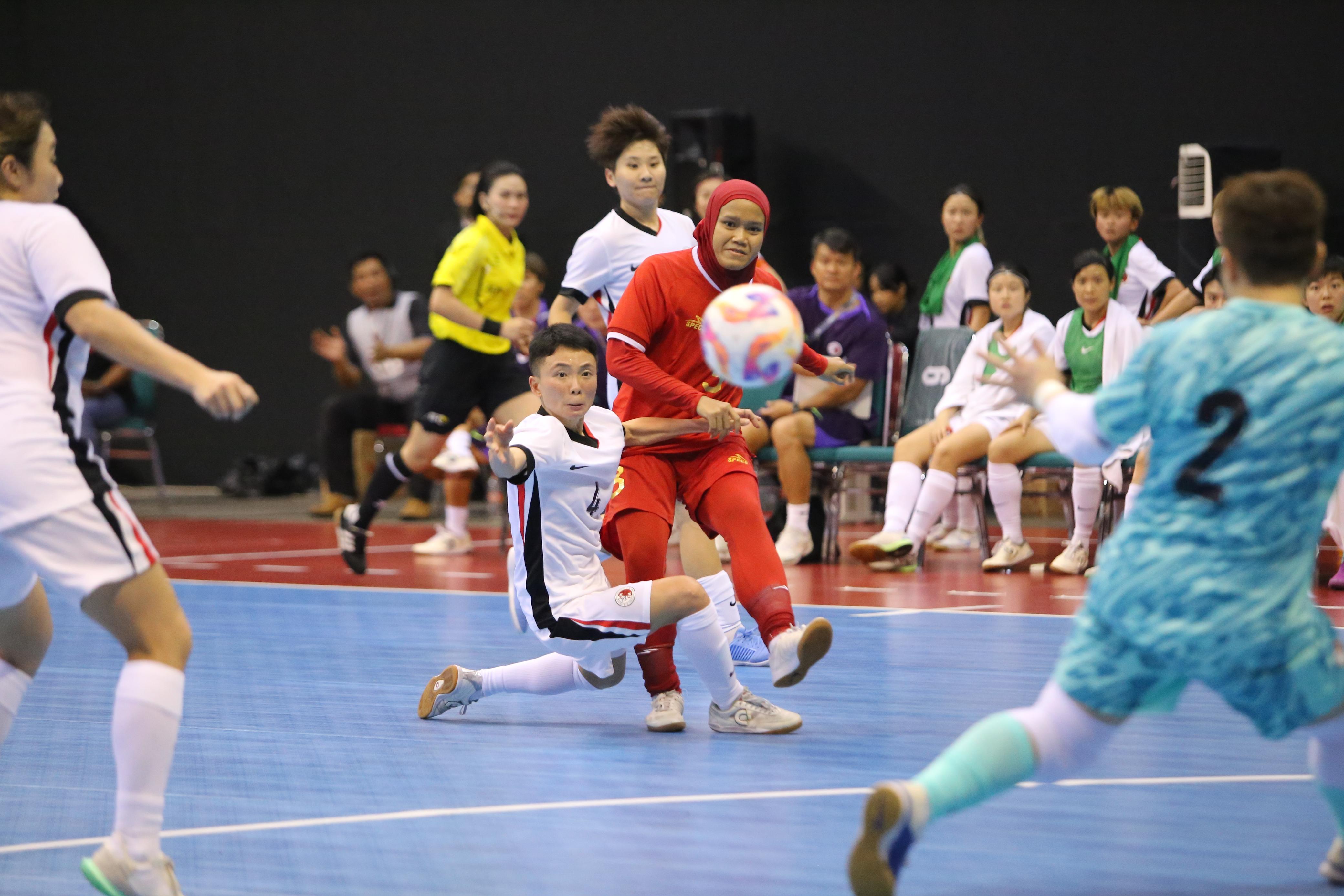 pemain timnas futsal putri saat berebut bola melawan hong kong di kualifikasi piala asia futsal putri di yogyakarta -ffi-