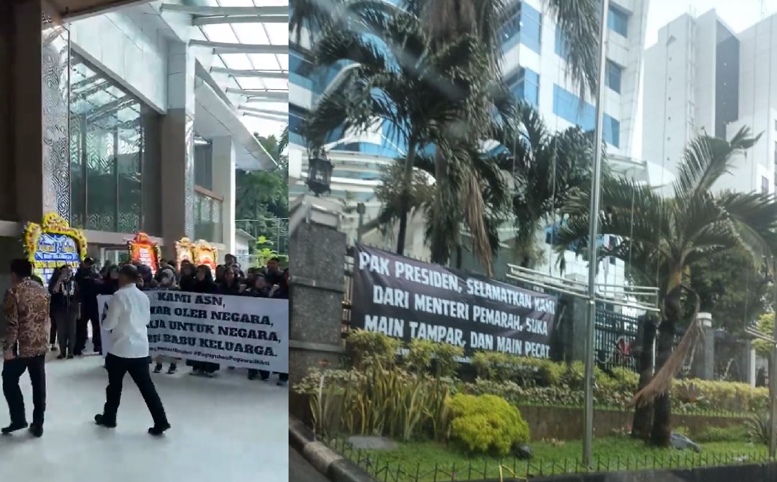sedangkan spanduk satu lagi berbunyi “kami asn, dibayar oleh negara, bekerja untuk negara, bukan babu keluarga”.