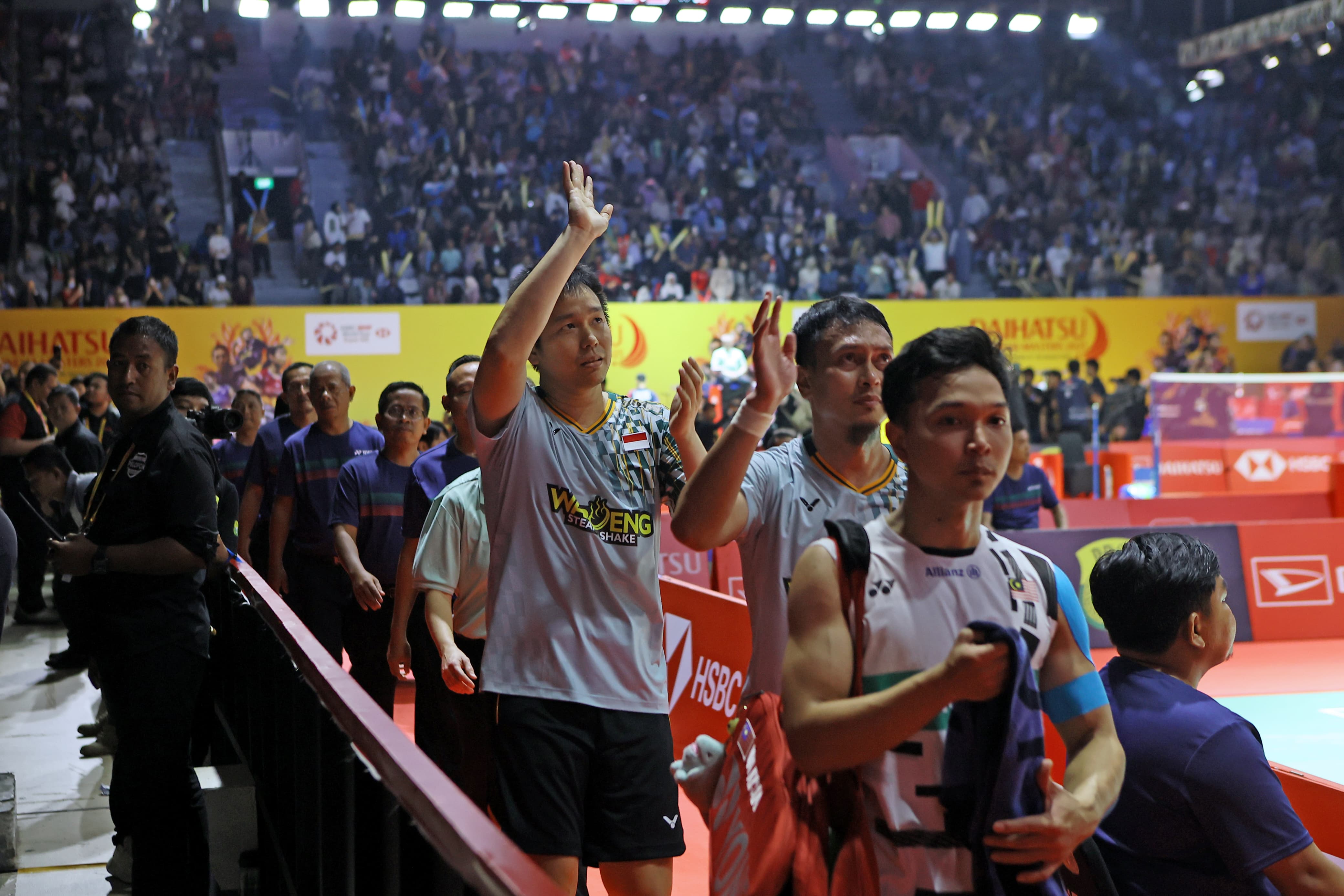 Hendra/Ahsan memberikan salam perpisahan kepada pendukungnya di Istora Senayan-pbsi-