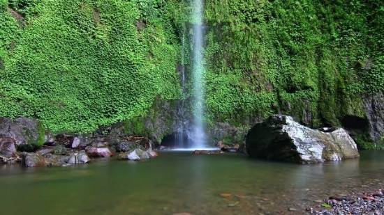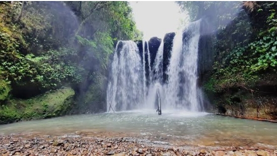 air terjun ini dikelilingi oleh pemandangan alam yang indah dan memiliki kolam alami di bawahnya, menjadikannya tempat ideal untuk berendam.