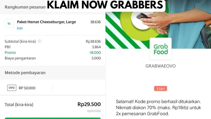 nikmati diskon hingga rp 15.000 + cashback rp 5.000 dalam bentuk poin ovo dengan promo grabfood khusus pelanggan baru tanggal kedaluwarsa: 31/01/2025.