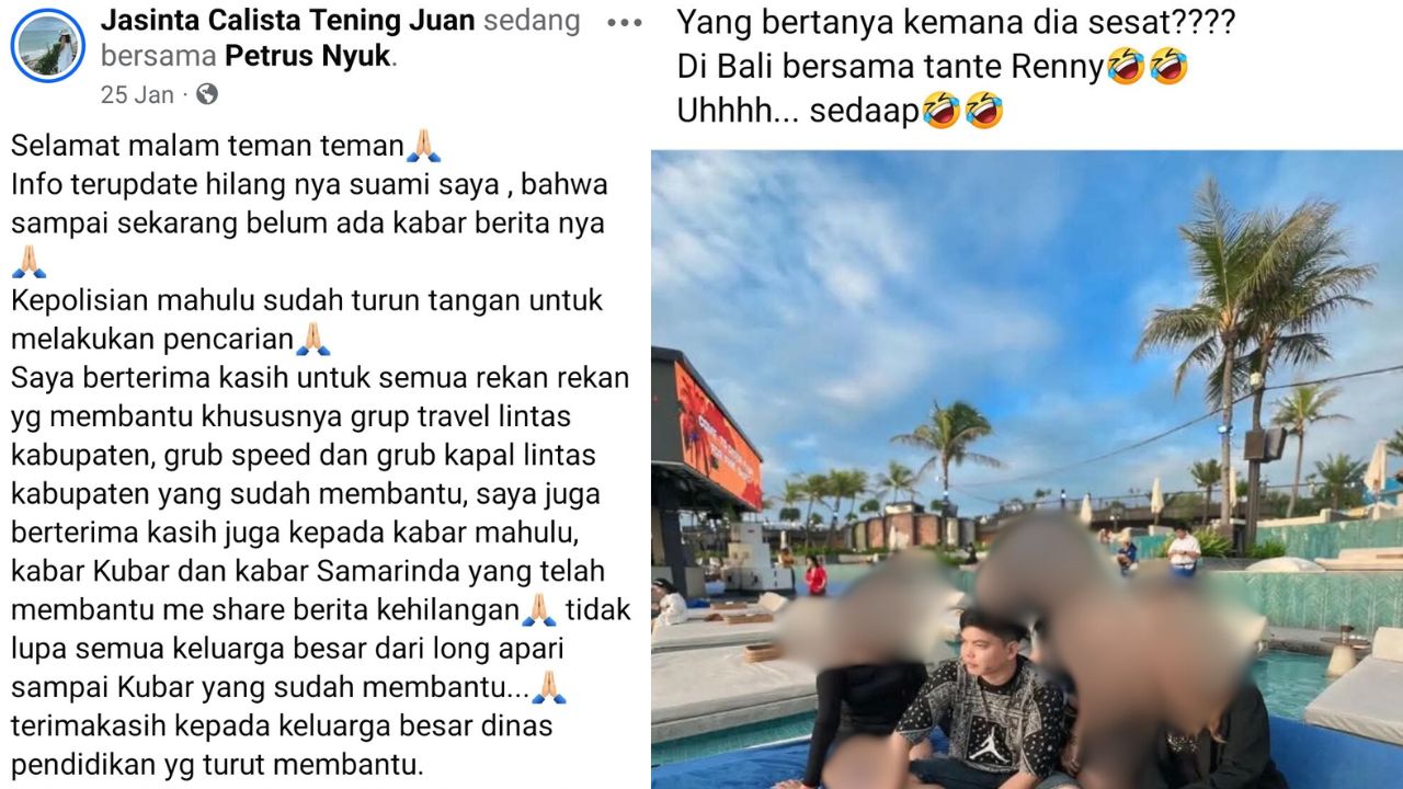Yang dikira hilang saat berburu, ternyata sedang berselingkuh di Bali.