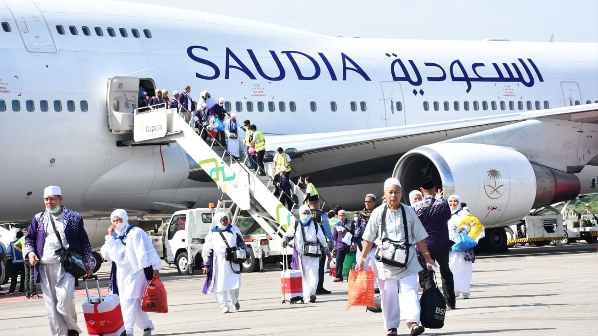 jamaah haji saat menyelesaikan penerbangan ke tanah suci-kemenag-