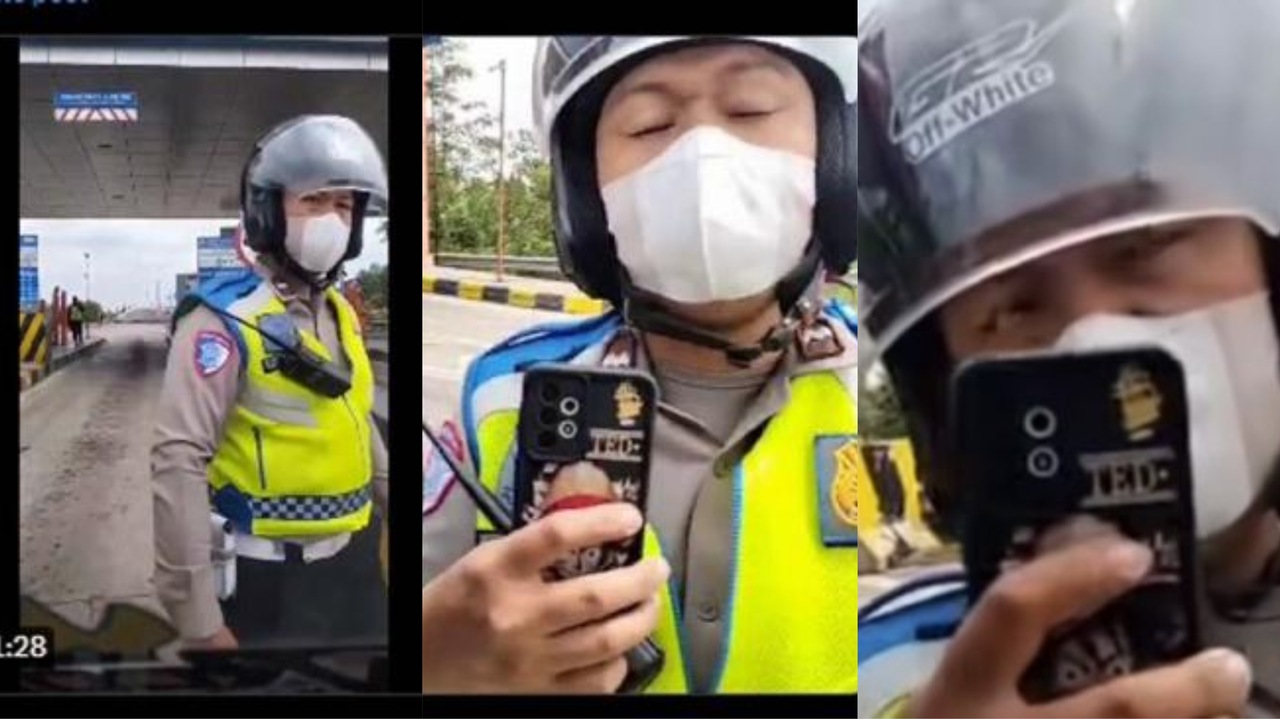 Pada Rabu, 5 Februari 2025, di Gerbang Tol Keramasan, Palembang, Sumatera Selatan, seorang polisi lalu lintas menghentikan paksa sebuah mobil box.