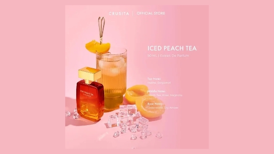 Parfum Crusita Ice Peach Tea ini merupakan parfum dengan tipe fresh yang super Versatile dengan aroma teh peach yang fruity yang dominan di awal spray.