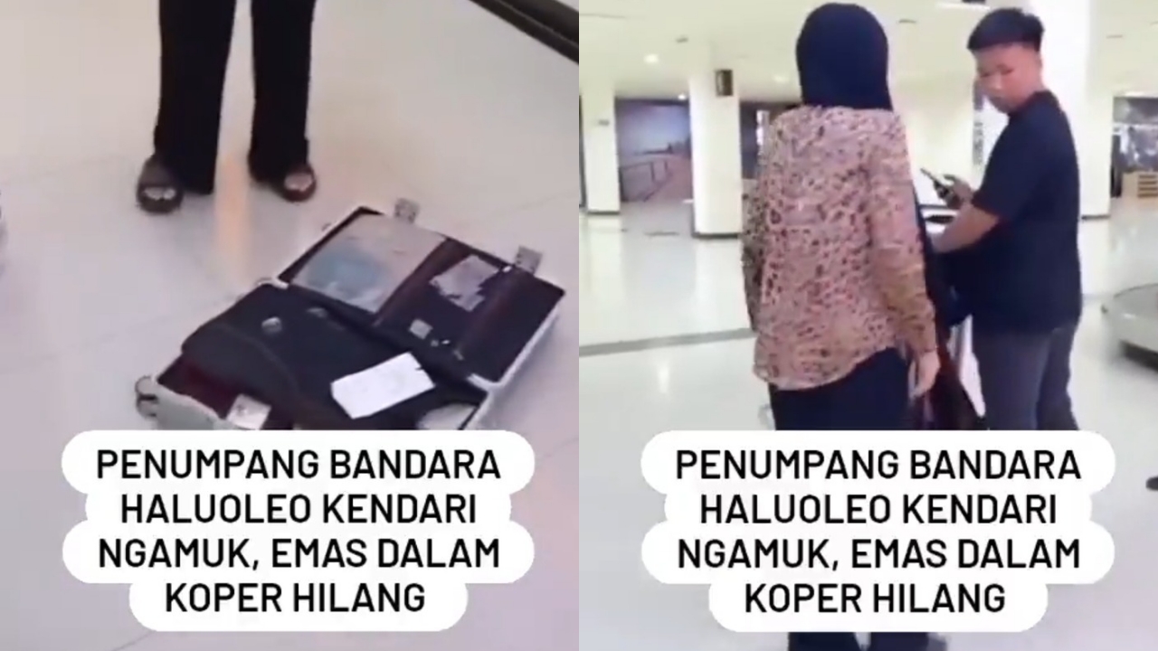 Kejadian panik tersebut terekam kamera dan ikut diunggah oleh akun X @heraloebss yang memperlihatkan wanita tersebut marah dan menangis terkait koper yang dibuka dan menemukan emasnya telah hilang.