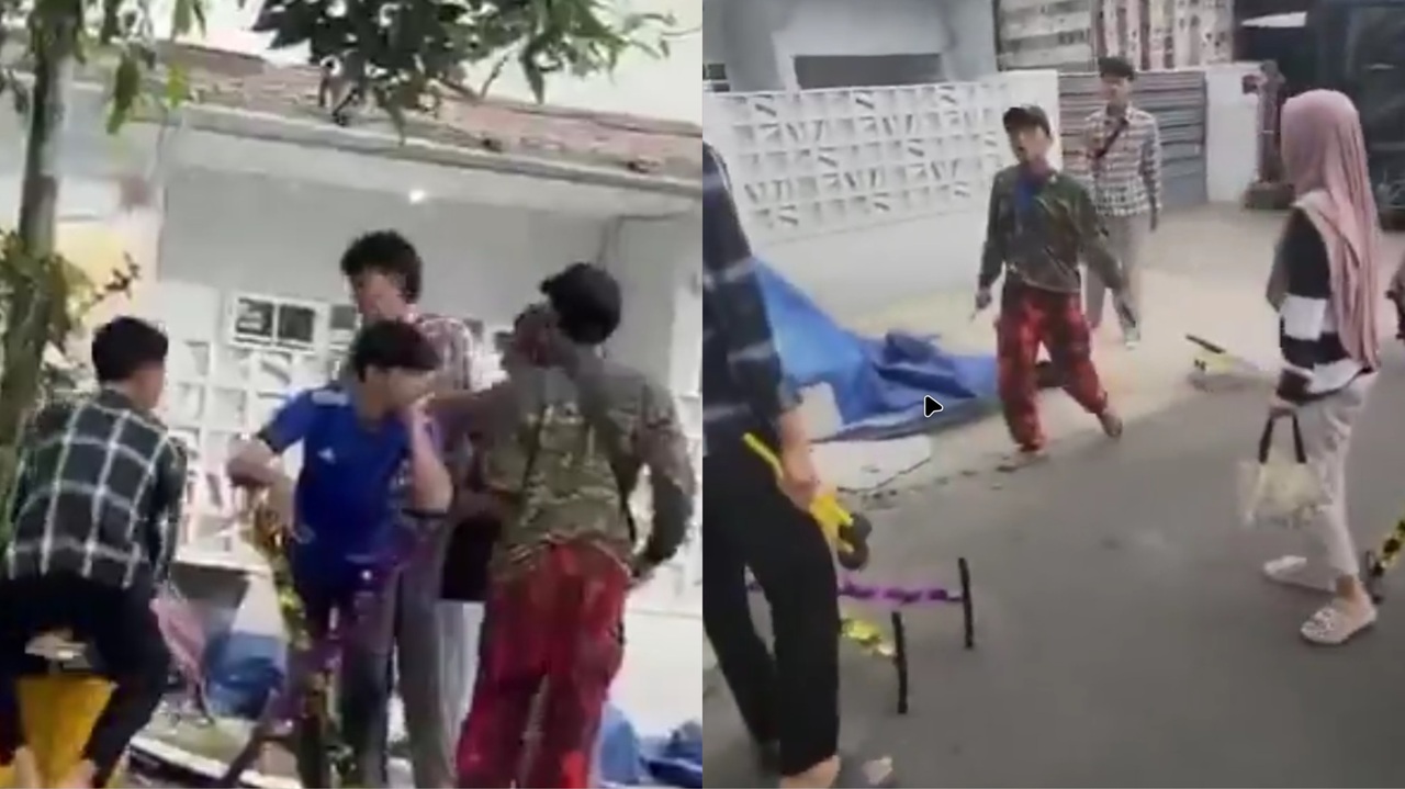 Dalam video tersebut salah satu pelaku terlihat mencoba merusak peralatan ekstrakurikuler, sementara yang lain menodongkan pisau ke arah seorang pria, mengancam keselamatan para guru dan anak-anak yang berada di lokasi.