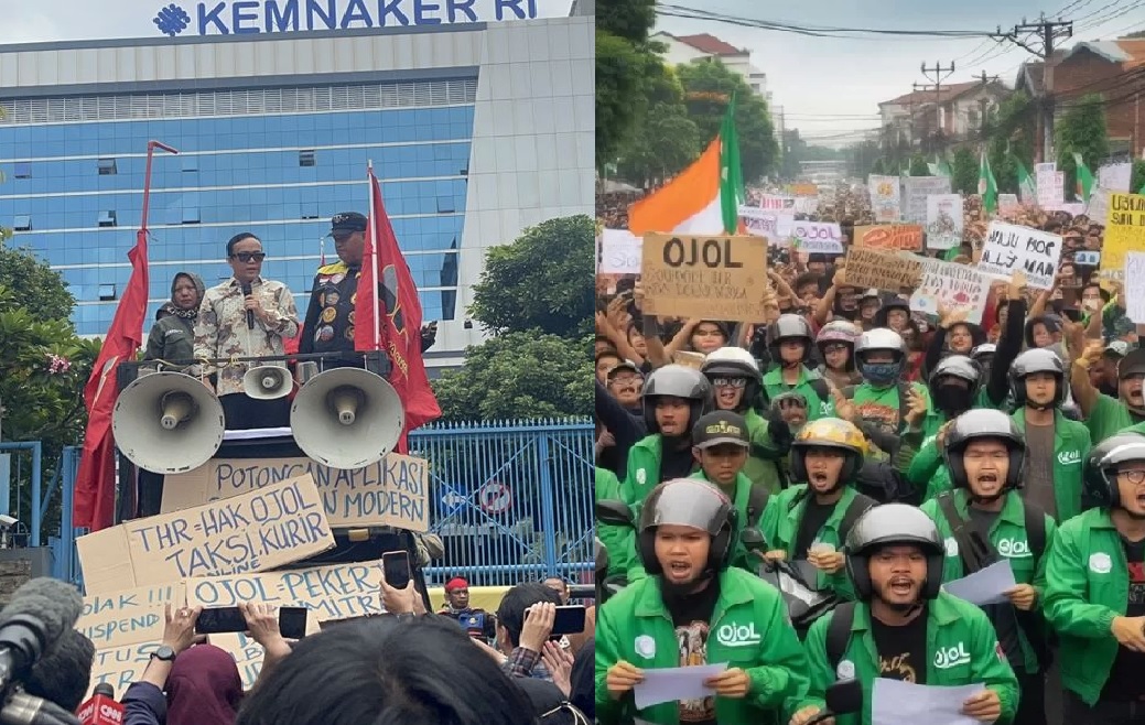 Aksi unjuk rasa ini berlangsung di depan Kantor Kementerian Ketenagakerjaan (Kemnaker) dan diikuti oleh pengemudi ojol dari berbagai daerah.