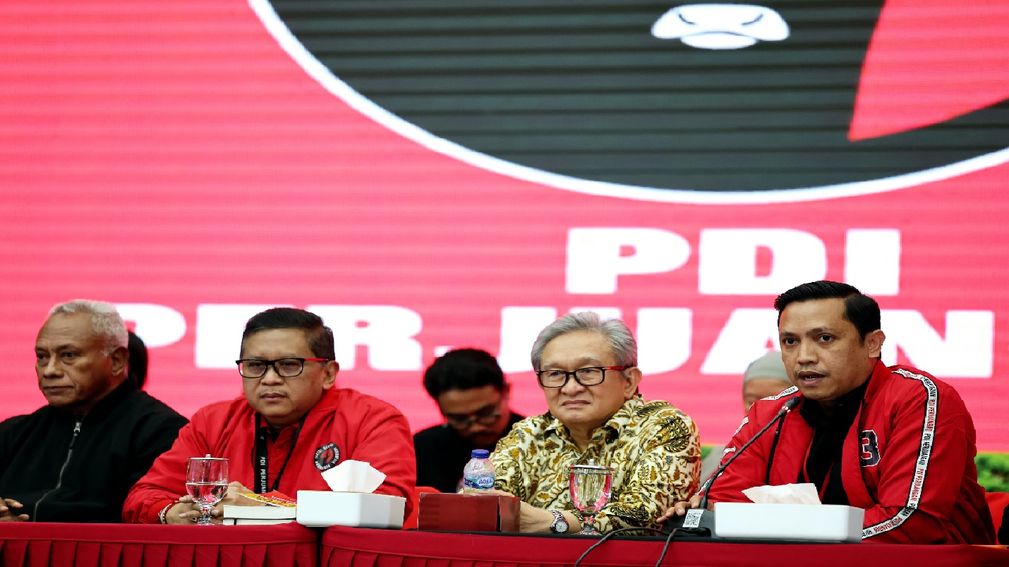 Hasto dalam konferensi pers di Kantor DPP PDIP, Menteng, Jakarta Pusat.