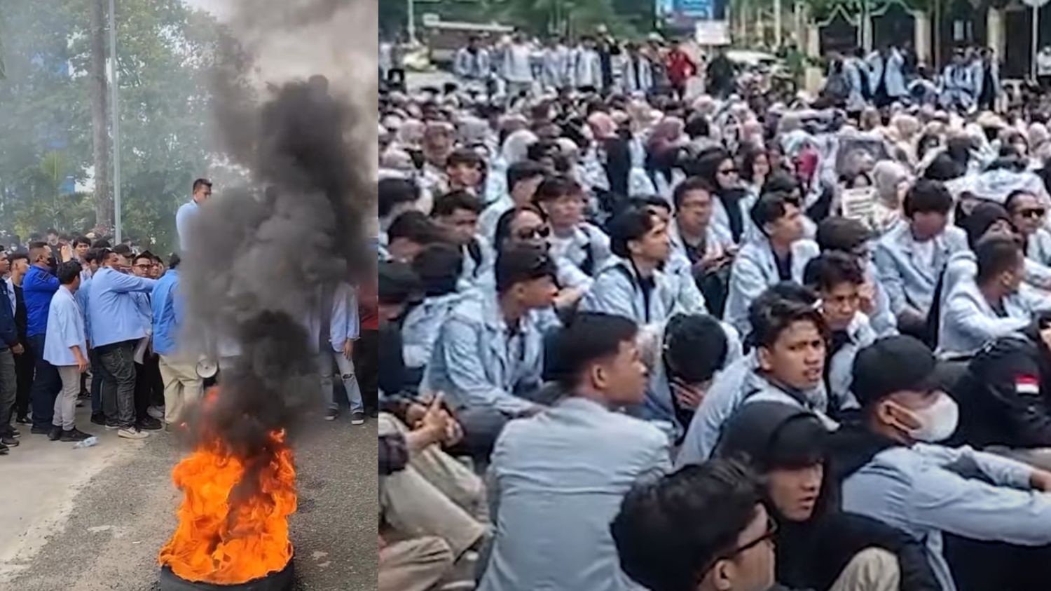 Berdasarkan informasi yang dimuat media Kompas, massa yang menggunakan almamater biru muda tersebut awalnya berkumpul di simpang lima dekat Gedung DPRD.