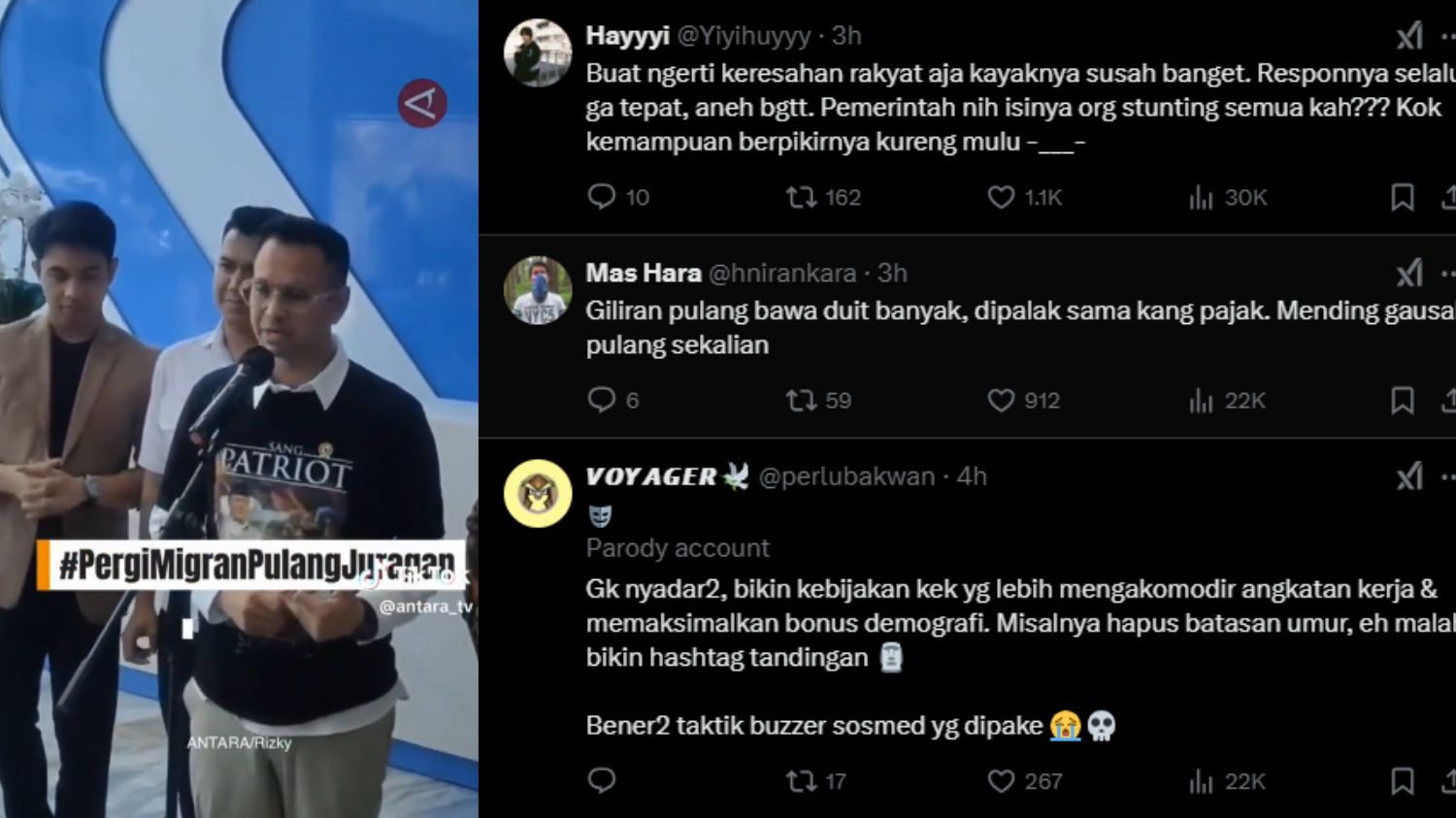"Giliran pulang bawa duit banyak, dipalak sama kang pajak. Mending gausah pulang sekalian," komentar akun X hnirankara.