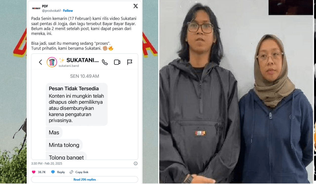 BACA JUGA:Tagar #KamiBersamaSukatani Trending Satu di X, Netizen: Liriknya Jujur Kok Dilarang