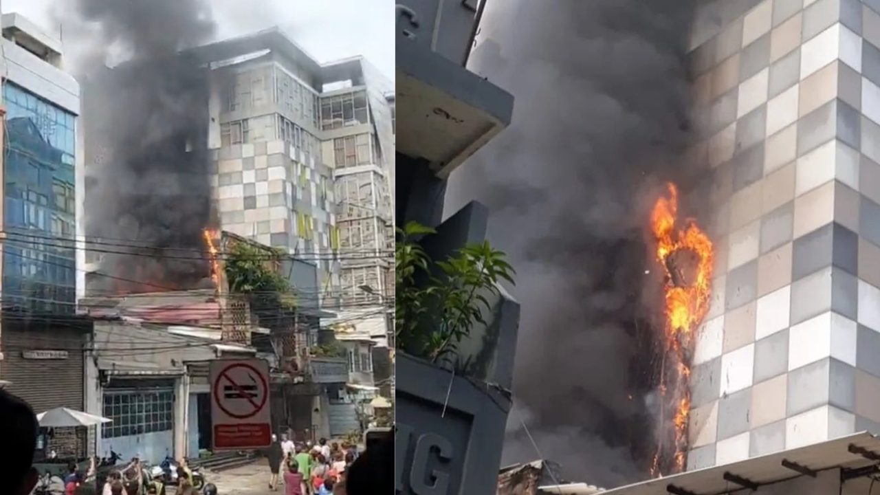 Dalam video amatir yang beredar di media sosial, terlihat kepulan asap hitam tebal membubung tinggi dari gedung hotel.