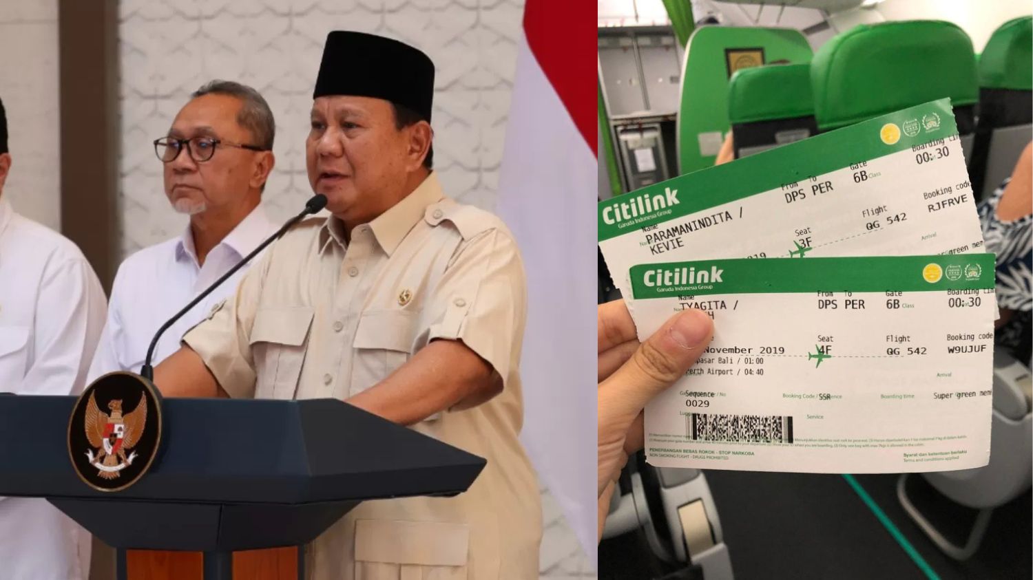 Prabowo Jamin Diskon Tiket Pesawat Lebaran 2025 Selama Dua Pekan--Kolase
