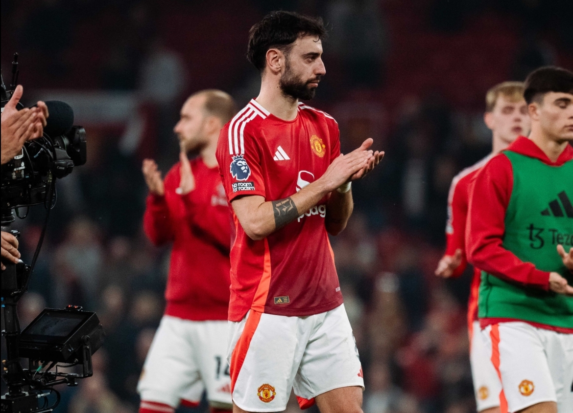 Bruno Fernandes menunjukkan ekspresi kurang bahagia usai Manchester United imbang 1-1 lawan Arsenal.-screenshot X Manchester United -