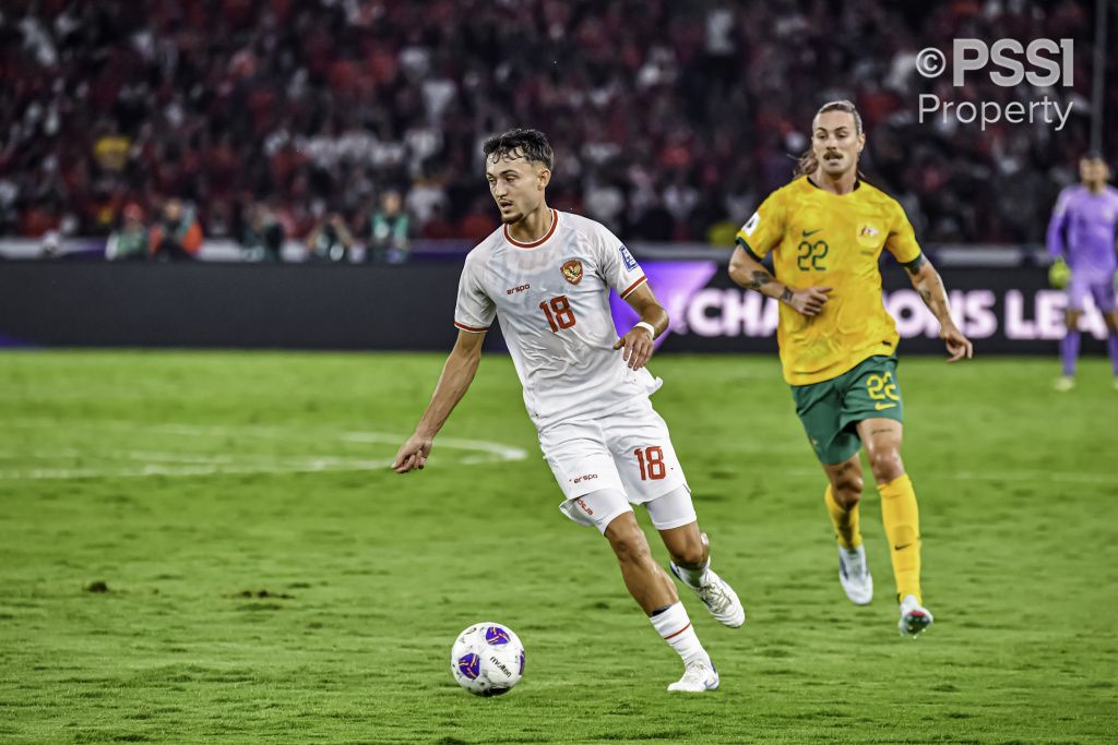 Jay Idzes ketika adu sprint dengan pemain Australia dalam pertemua di SUGBK -pssi-