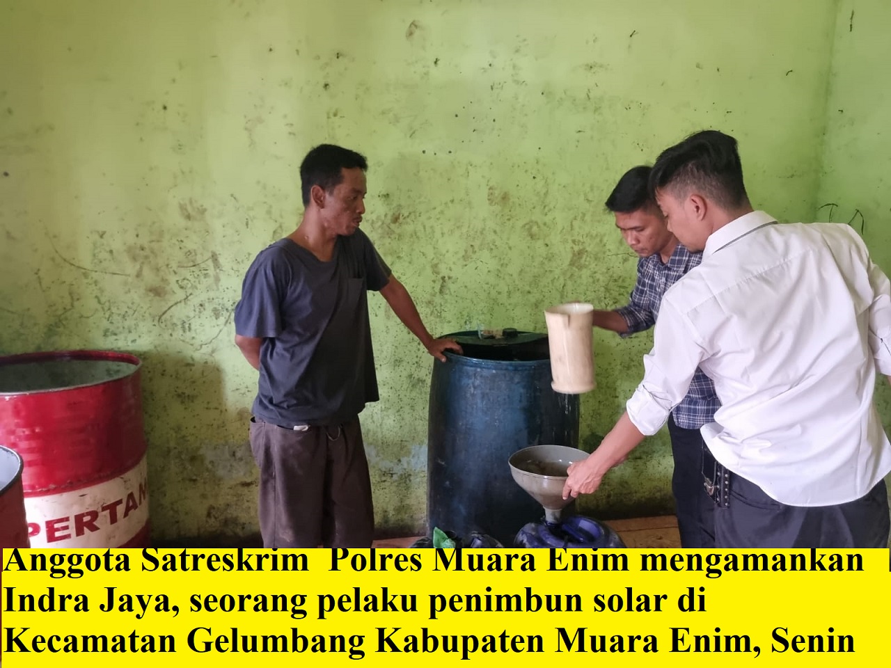Indra Jaya yang merupakan warga Kabupaten Deli Serdang, Sumatera Utara itu ditangkap polisi di rumah kontrakannya di Dusun I RT.11 Desa Karang Endah Utara, Kecamatan Gelumbang, Kabupaten Muara Enim, yang sekaligus dijadikan tempat menimbun solar pada Senin, 17 Maret 2025.