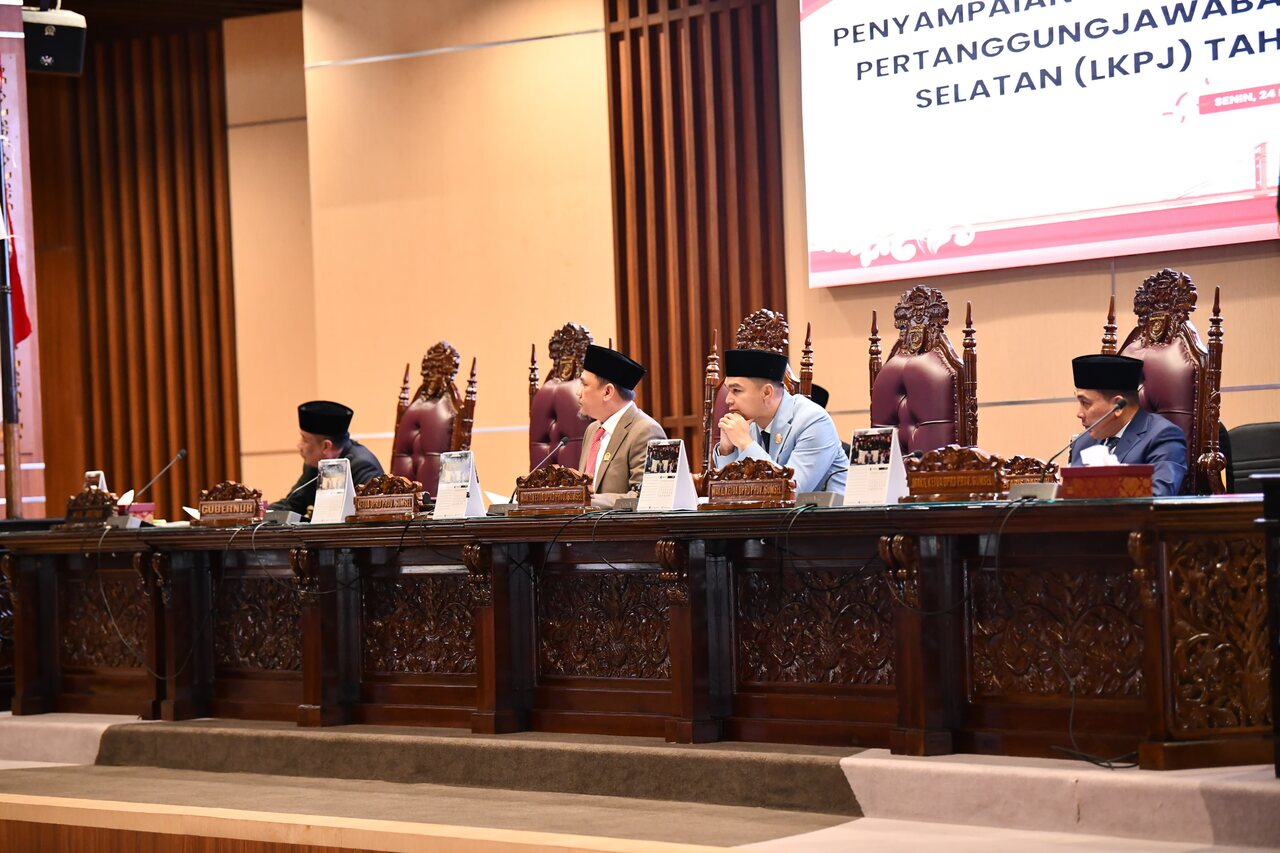 bacakoran.co - pimpinan dan anggota mendengarkan penyampaian pengantar laporan keterangan pertanggungjawaban gubernur sumatera selatan (lkpj) tahun aggaran 2024 oleh gubernur provinsi sumatera selatan dan bentuk panitia khusus (pansus) dalam membahasnya pada rapat paripurna xi (11) dewan perwakilan rakyat daerah provinsi sumatera selatan bertempat di ruang rapat paripurna dprd prov. sumsel hari ini (senin, 24/3).